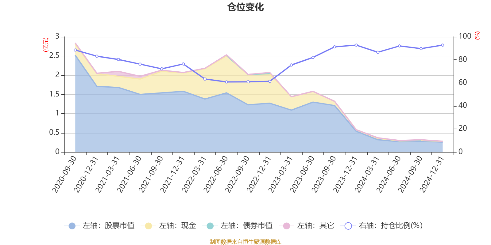 据定期报告数据统计,近三年平均股票仓位为79.08%,同类平均为83.32%。2024年末基金达到92.75%的最高仓位,2022年上半年末最低,为60.8%。
